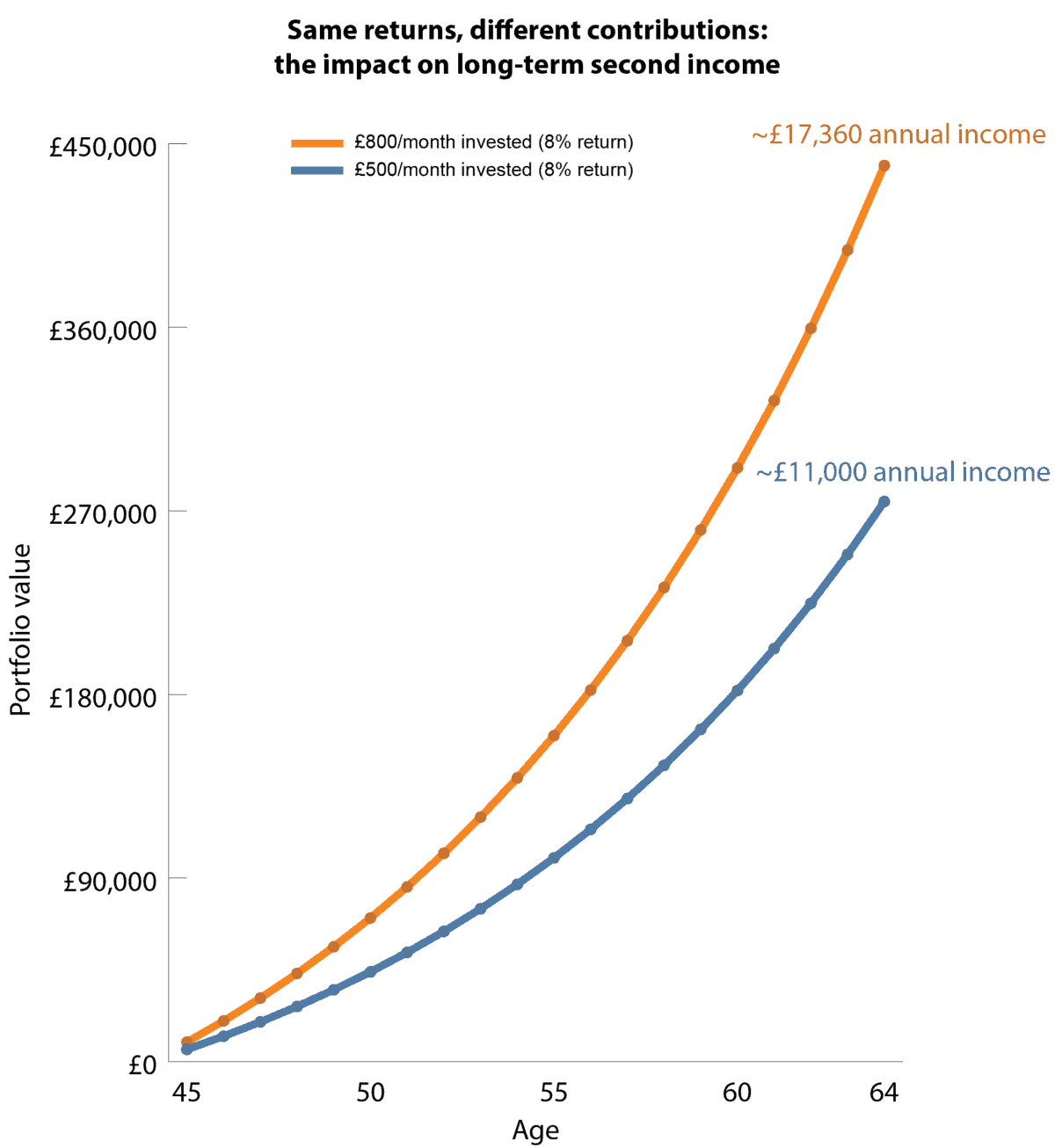 Получение второго дохода может показаться недостижимым для любого, кто начинает с нуля в возрасте 45 лет. Но поскольку до выхода на пенсию осталось 20 лет, у инвесторов все еще есть время заставить работать сложные проценты и потенциально генерировать годовой поток дохода в размере 17 360 фунтов стерлингов в будущем.